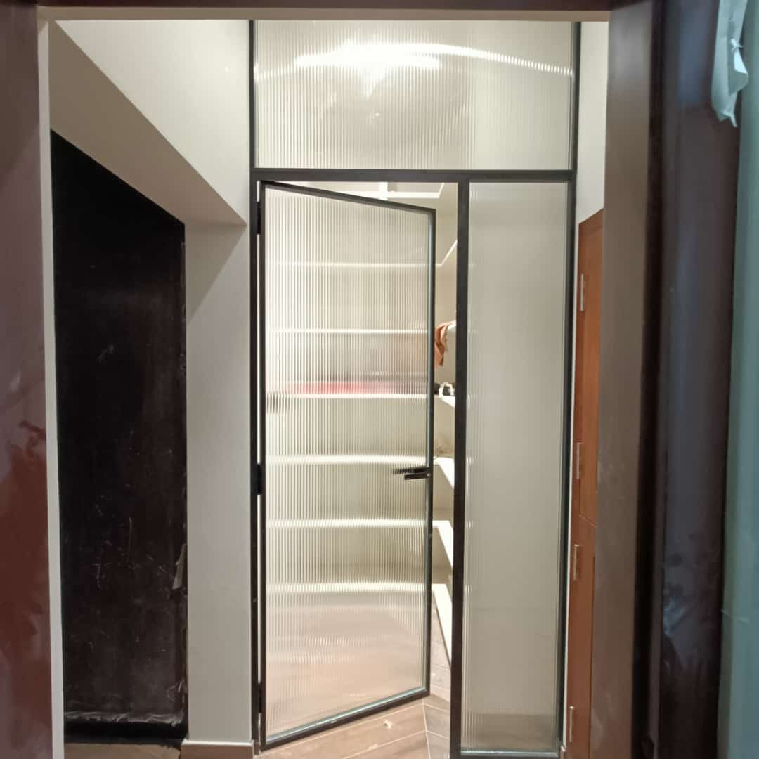 Fluted glass features vertical grooves that create a textured, ribbed appearance, offering both style and privacy. It allows light to pass through while subtly obscuring visibility, making it ideal for doors, partitions, and cabinets. This elegant glass type adds a modern, decorative touch to any interior space